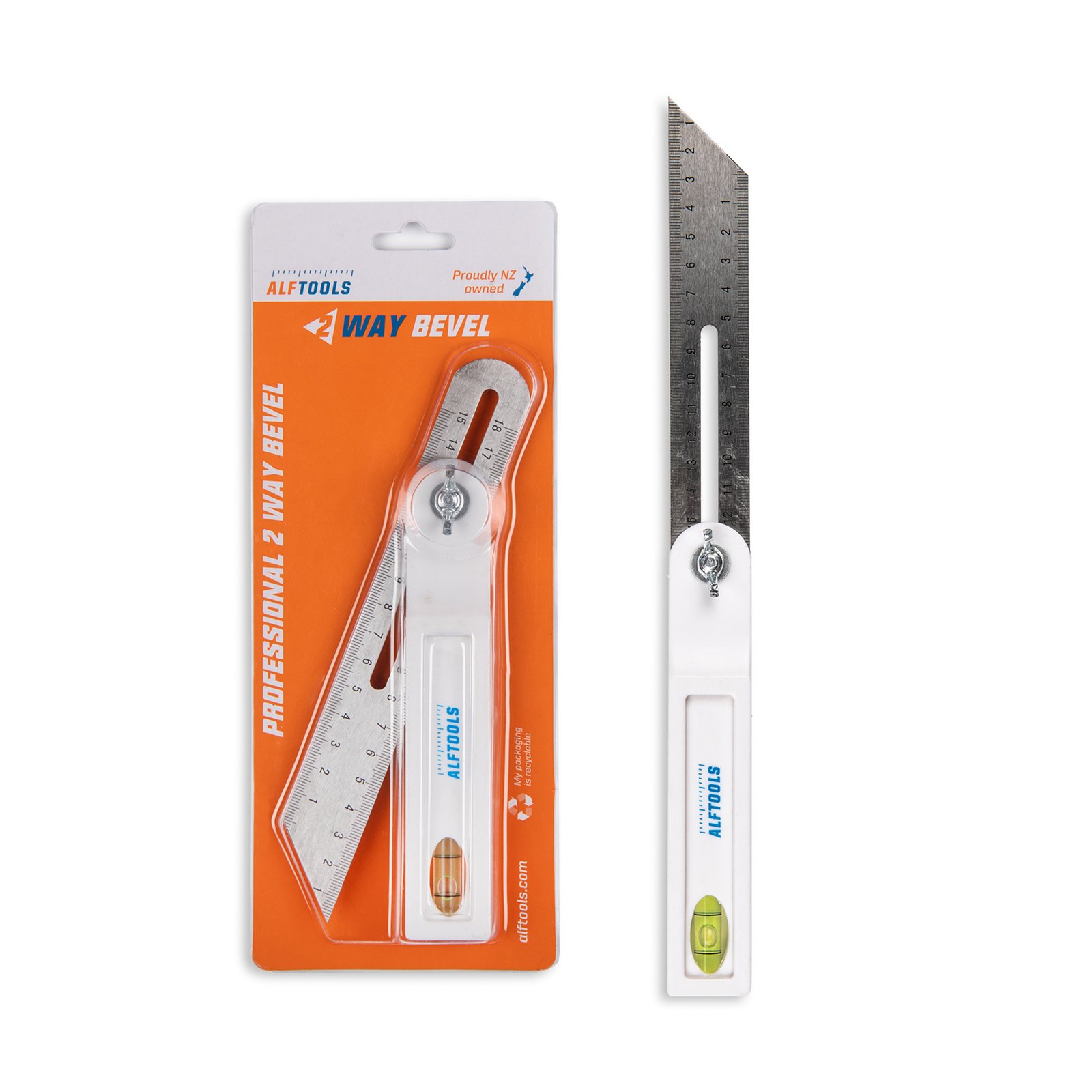 The ALF TOOLS 2 WAY BEVEL is high a quality sliding Bevel with a built-in spirit vial perfect for setting angles in cutting applications. This Bevel is great for tradesmen and DIYers looking to transfer that tricky angle.