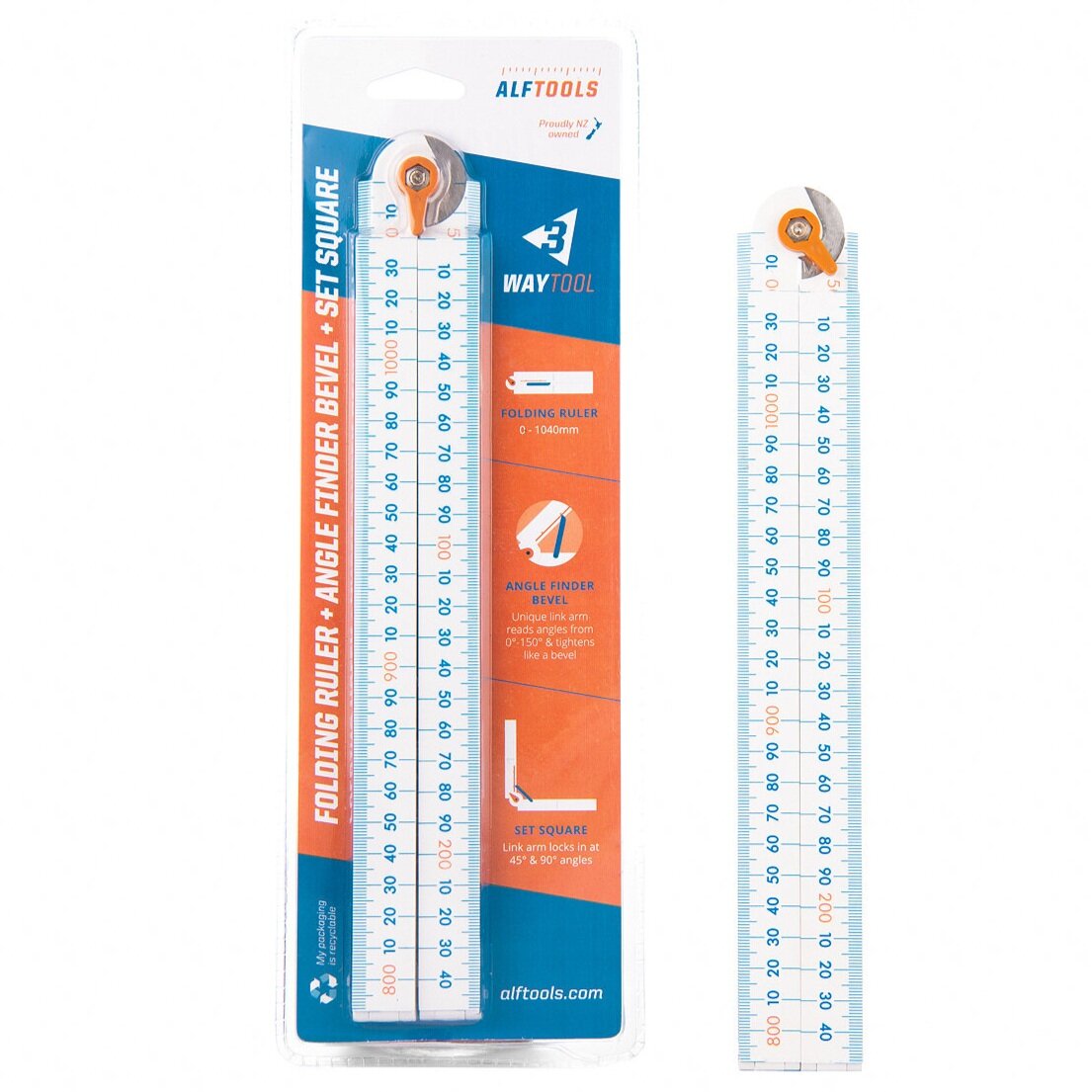 The Alf Tools 3 Way Tool is the flagship multipurpose measuring tool, combining a folding ruler, angle finder, and set square in one compact, patented design. Perfect for builders, carpenters, and DIYers, it delivers precision, portability, and versatility on every project.